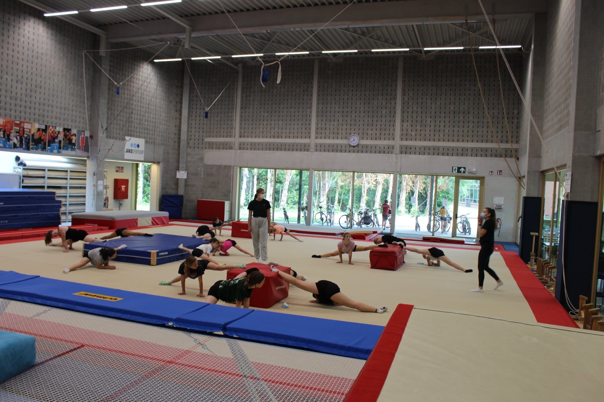 In de gymhal is een verende vloer van 14 meter bij 14 meter aanwezig. Er zijn twee maxitrampolines ingebouwd met valkuilputten. Er zijn een 25 meter lange tumblingbaan, een fasttrack en een dubbele minitrampoline aanwezig die allen eindigen op een grote valkuilput.